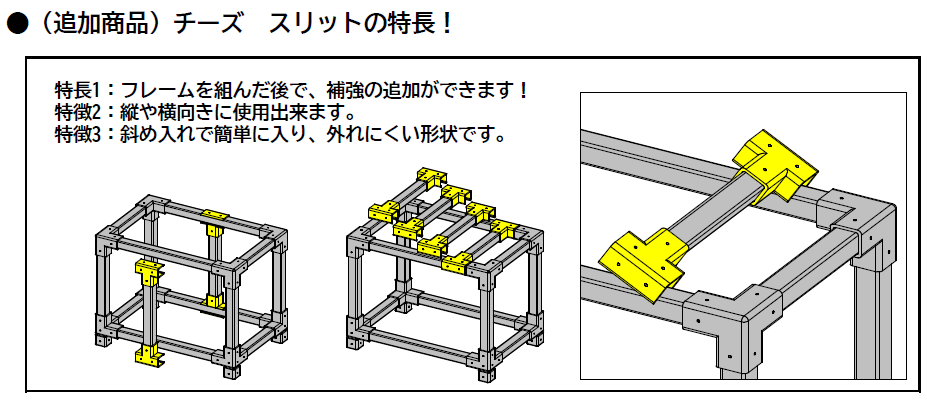 カクラック(角パイプ継手)シリーズに、新たにチーズ(スリット)を追加いたしました。