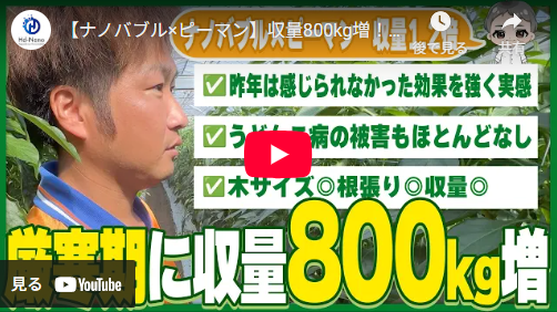 ・ピーマン:15~20%増※クリックすると効果実績がご覧いただけます。※記載の数値は実績値であり、効果を保証するものではありません