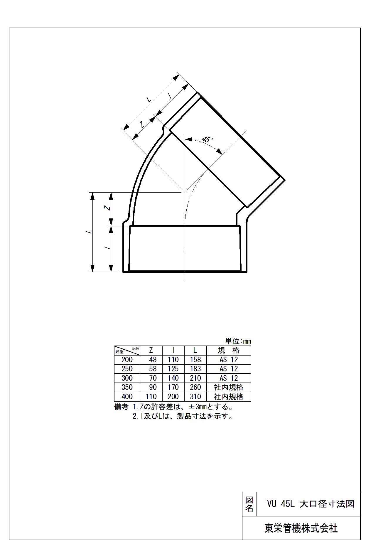 大口径継手(VU) 45°エルボ