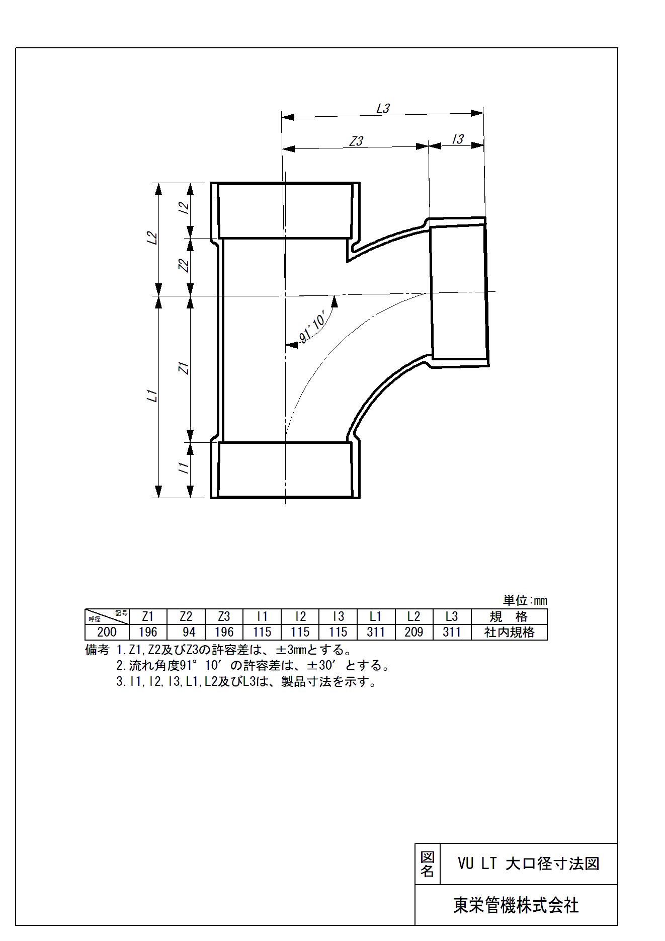 大口径継手(VU) 90°大曲りY