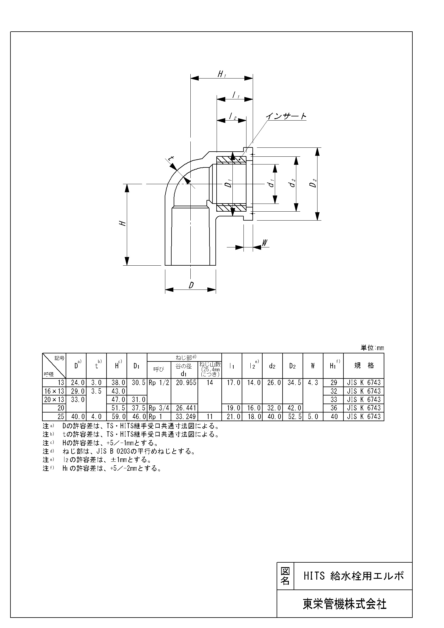 HIインサート継手 給水栓用エルボ