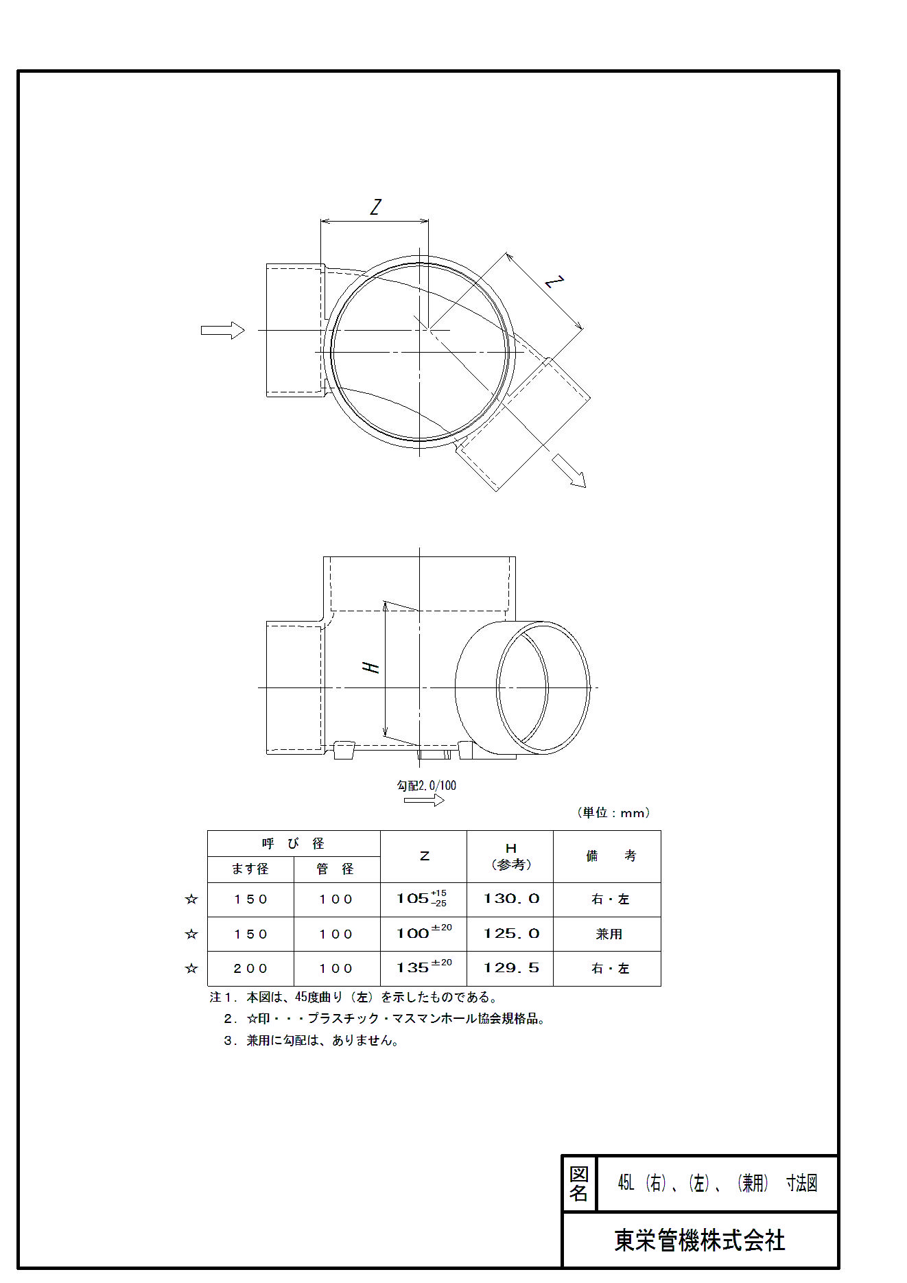 塩ビ製宅内マス 45度曲り
