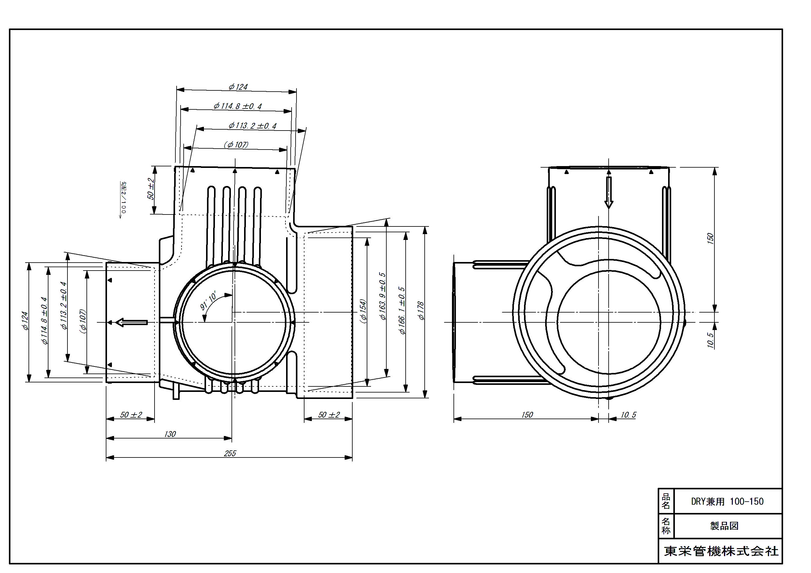 塩ビ製宅内マス ドロップ90度合流