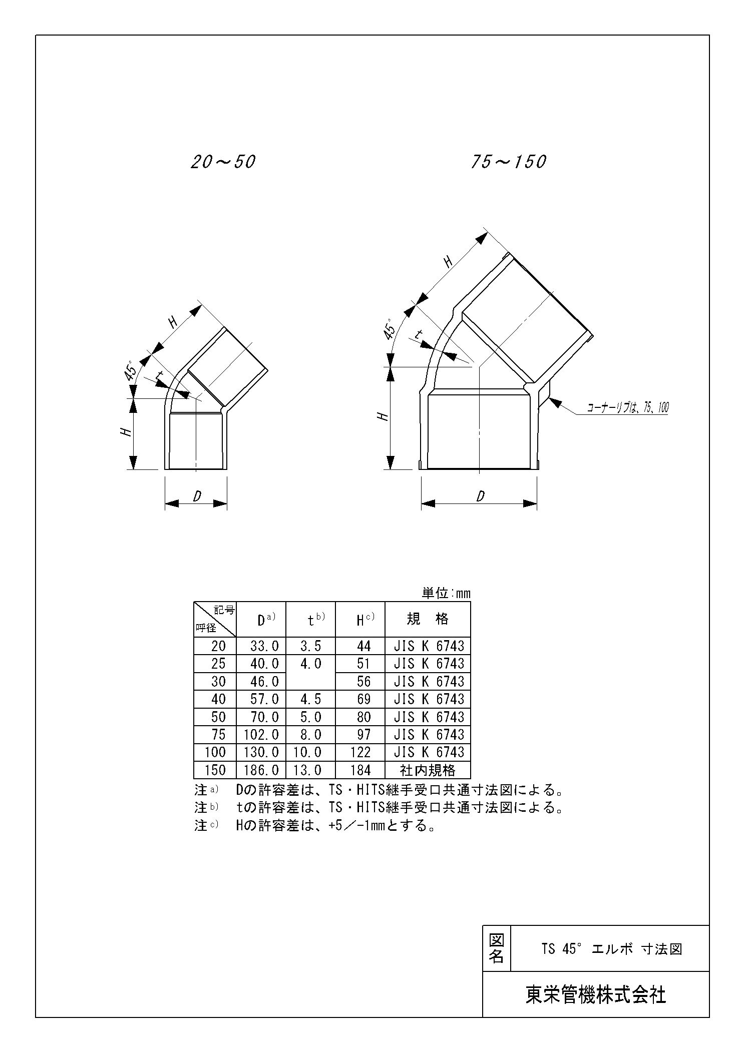 TS継手 45°エルボ