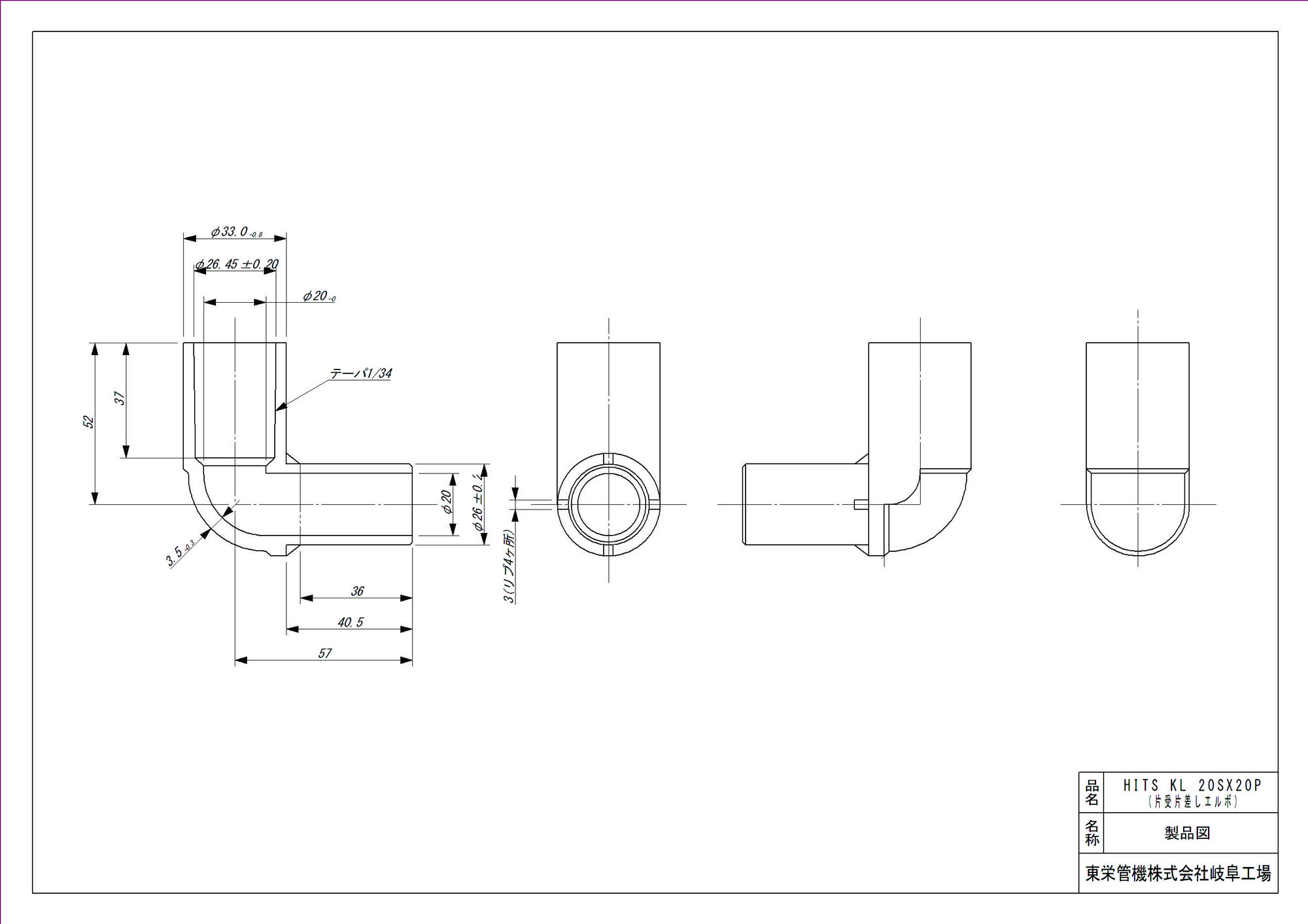 HI継手 片受片差しエルボ
