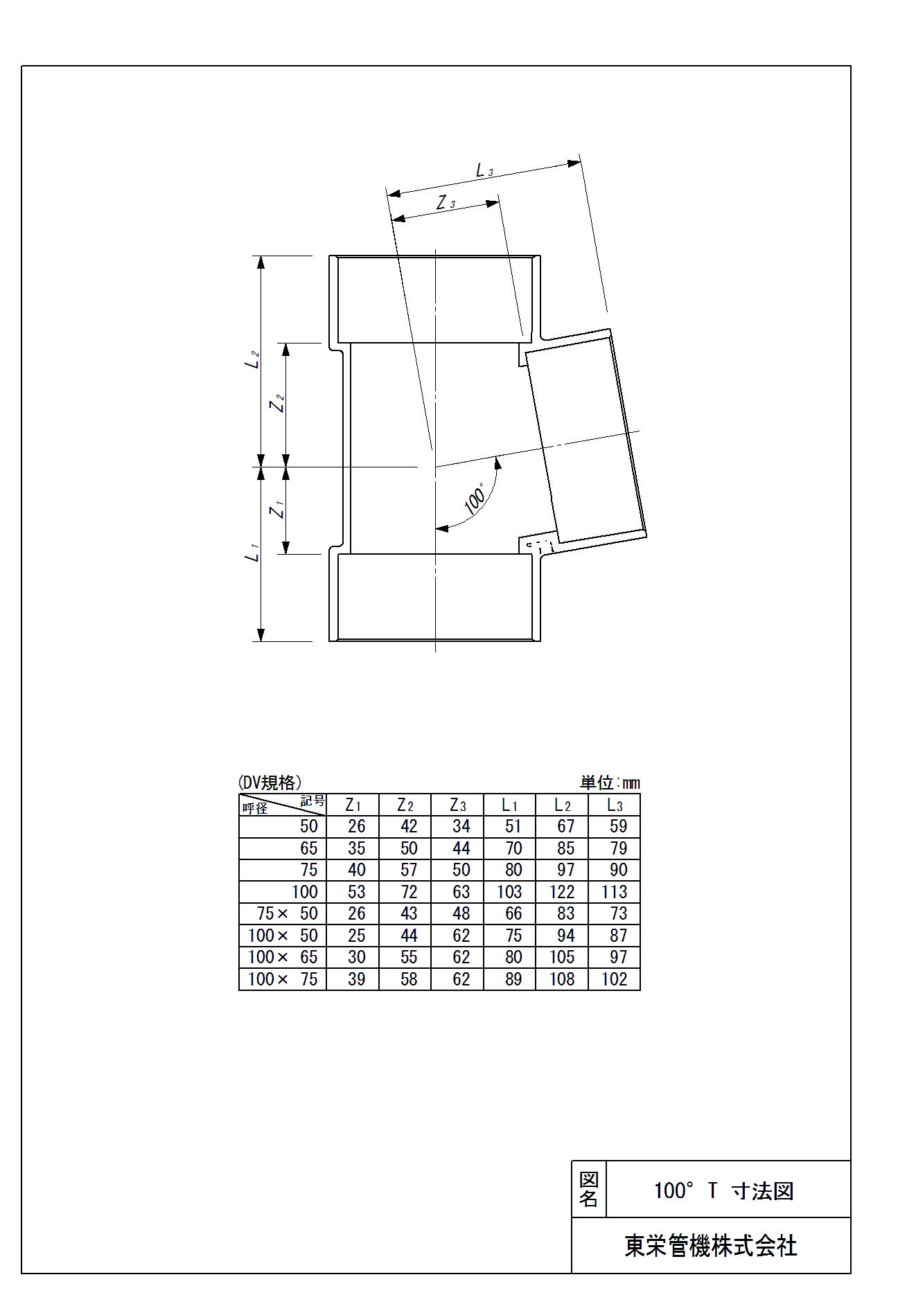 雨水排水継手 100°T