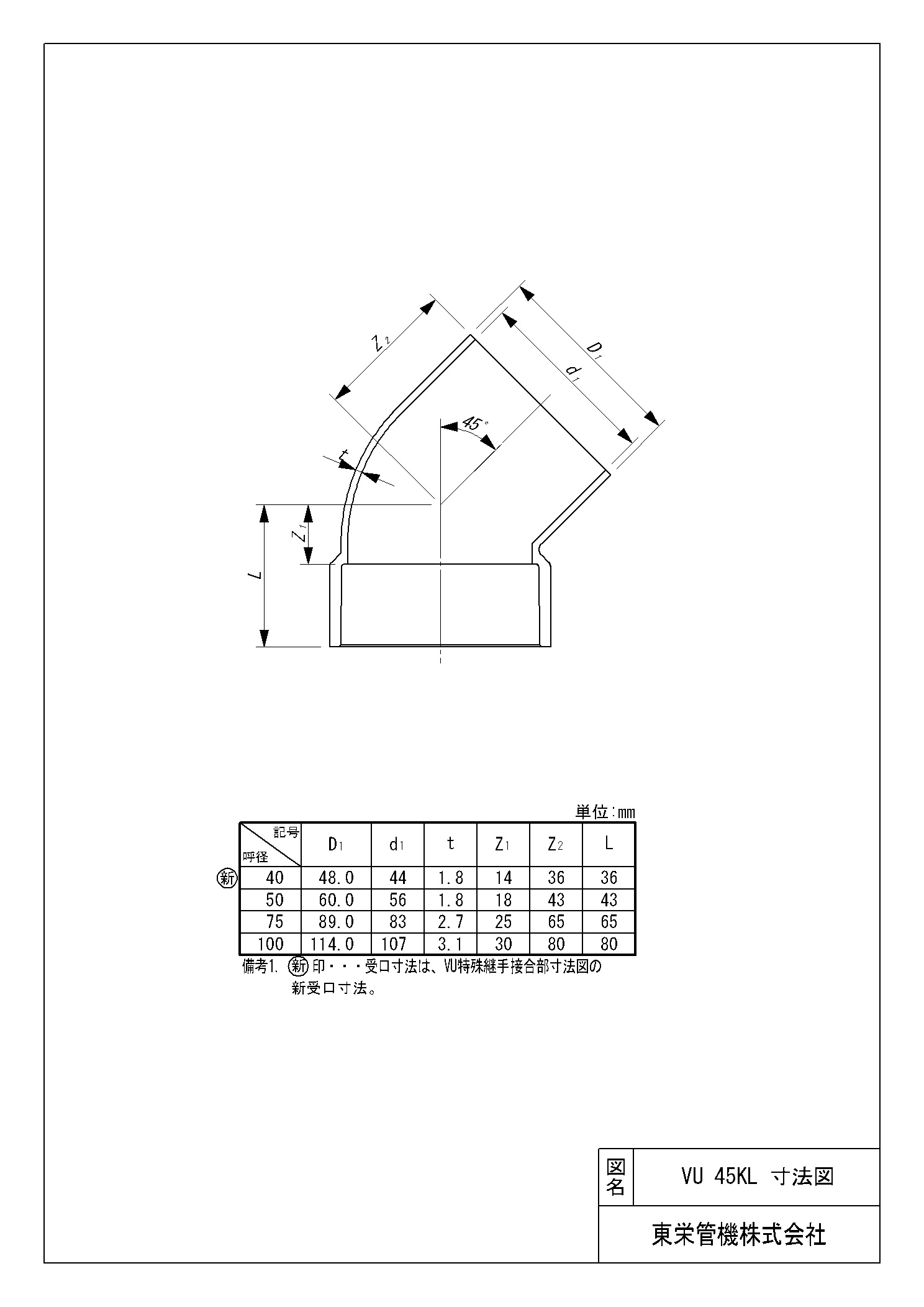VU特殊継手 片受45°エルボ