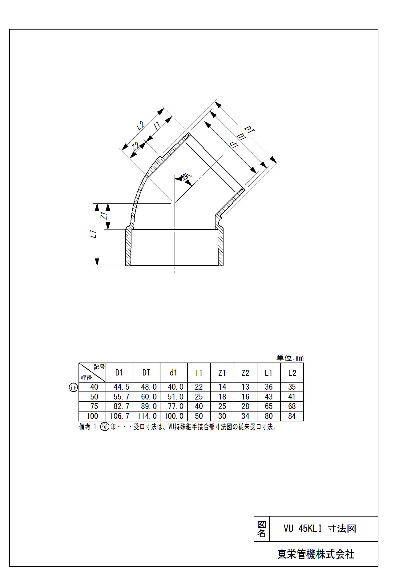 VU特殊継手 片受・片差し45°エルボ