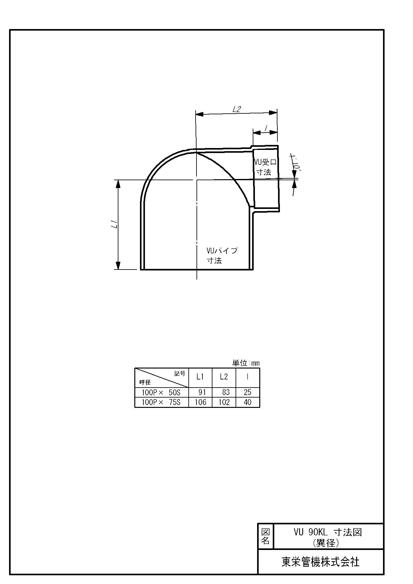 VU特殊継手 片受異径エルボ
