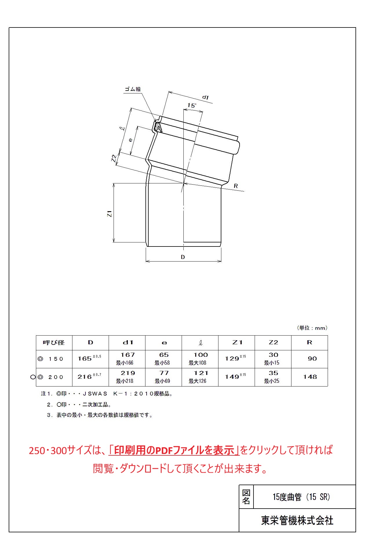 下水道用(曲管) 15度曲管