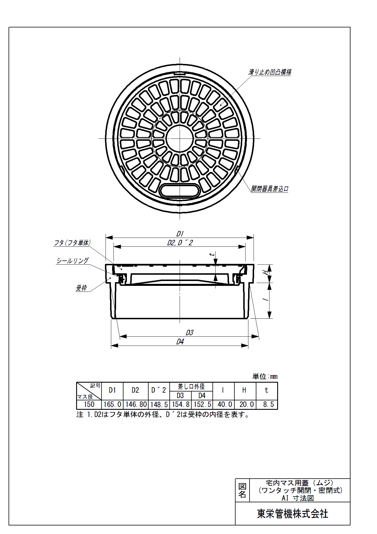 差し口ワンタッチ・密閉式。