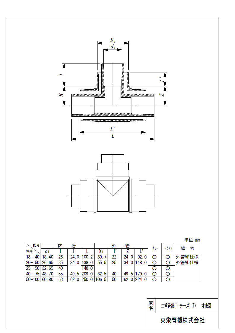 二重管継手 チーズ