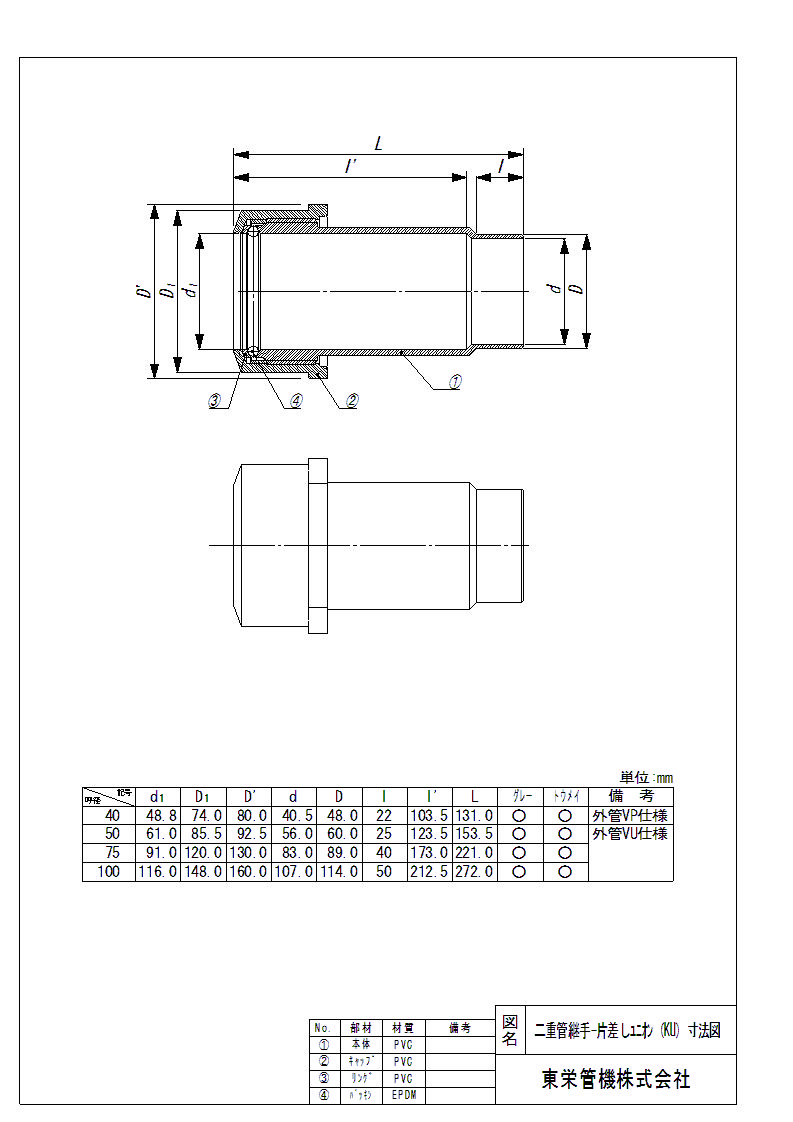 二重管継手 片差しユニオン