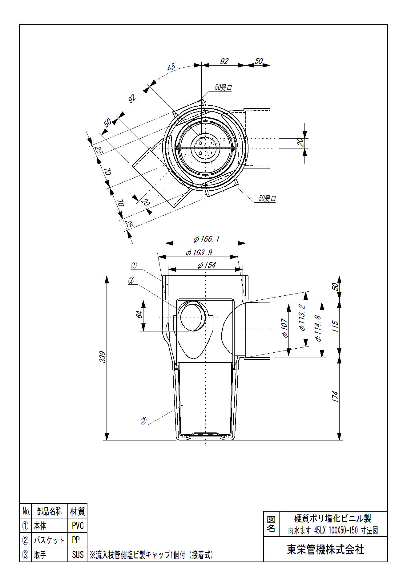 雨水マス 45度曲り内外合流
