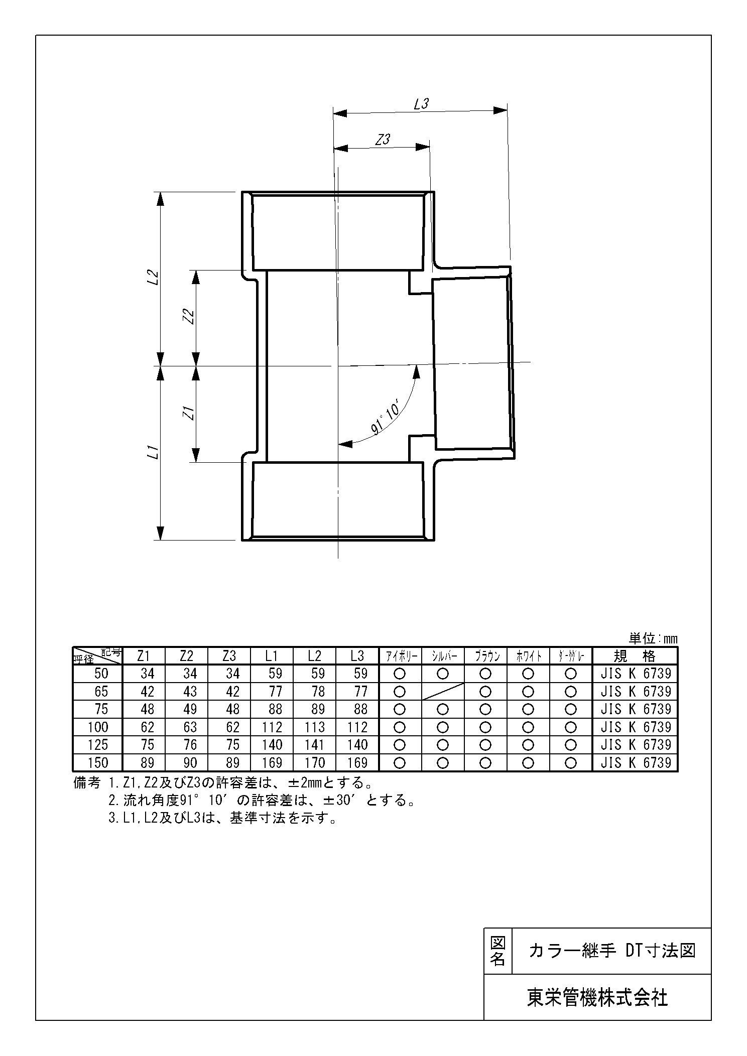 | サイズ | カラー | 製品番号 | Tコード | 備考 | 入数 | 設計価格(円) |