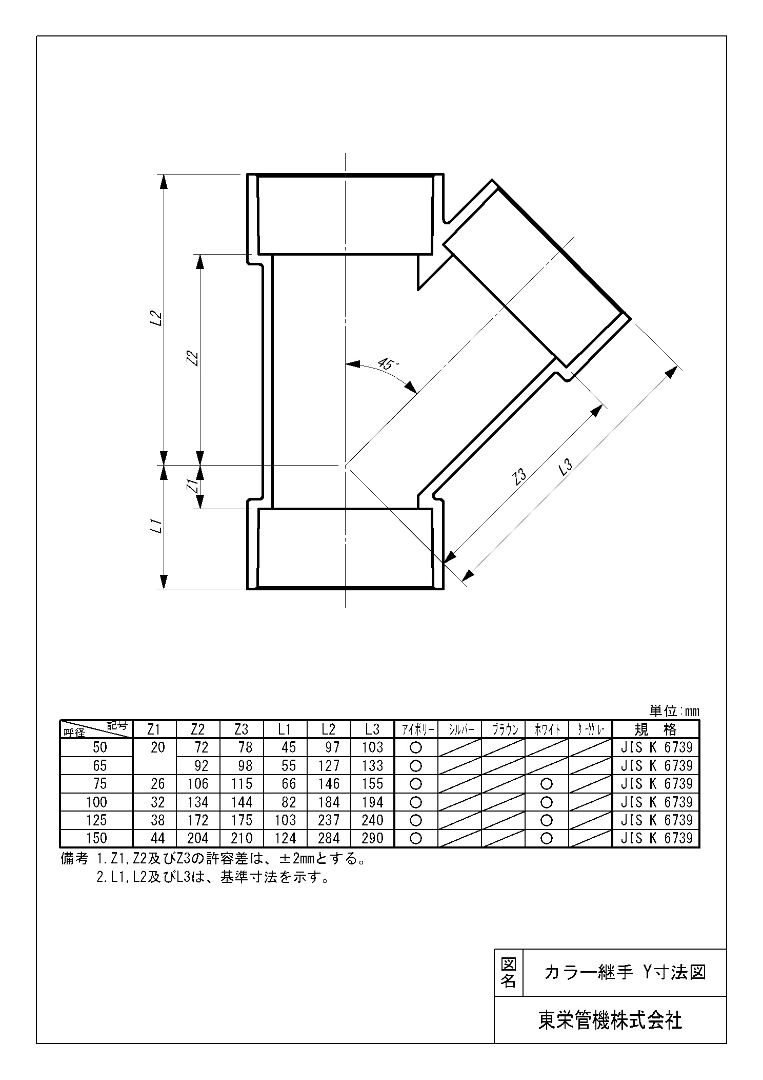 カラー継手(ホワイト) 45°Y