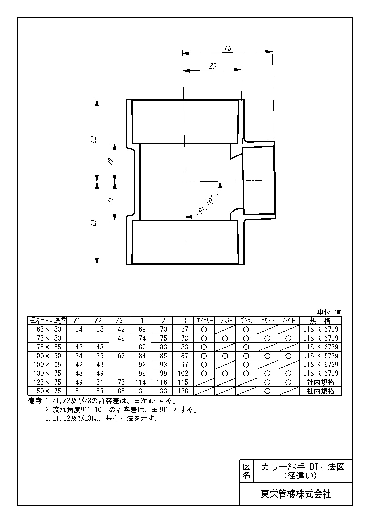 | サイズ | カラー | 製品番号 | Tコード | 備考 | 入数 | 設計価格(円) |
