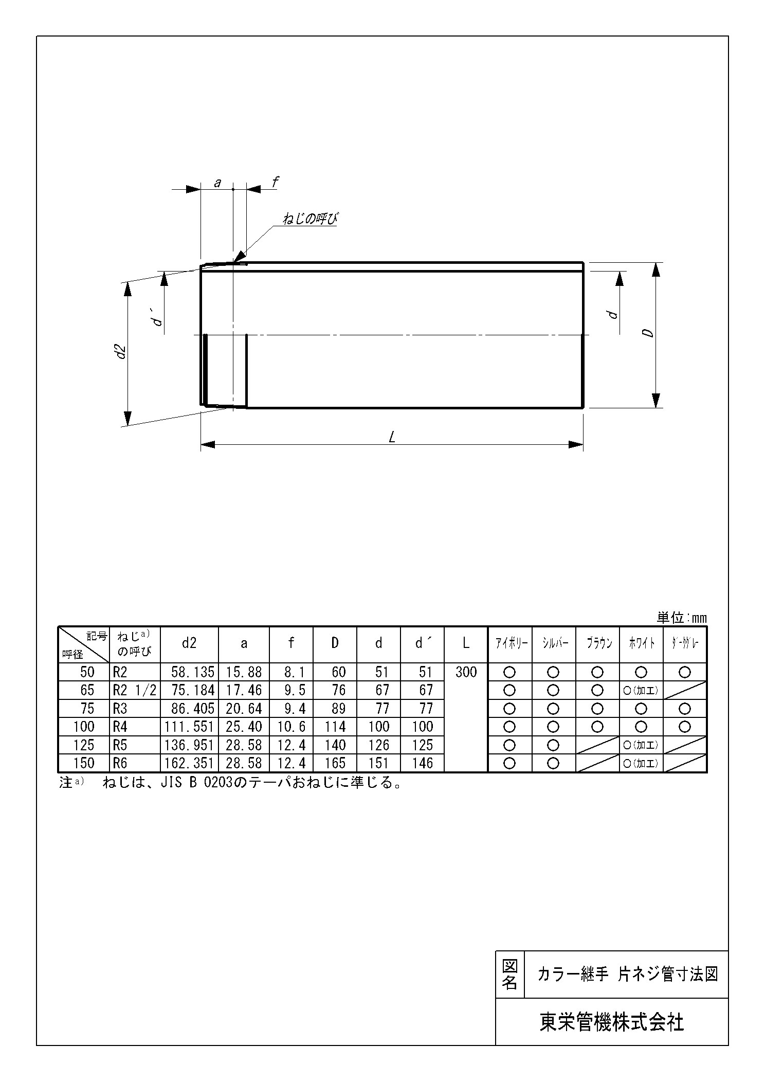 | サイズ | カラー | 製品番号 | Tコード | 備考 | 入数 | 設計価格(円) |