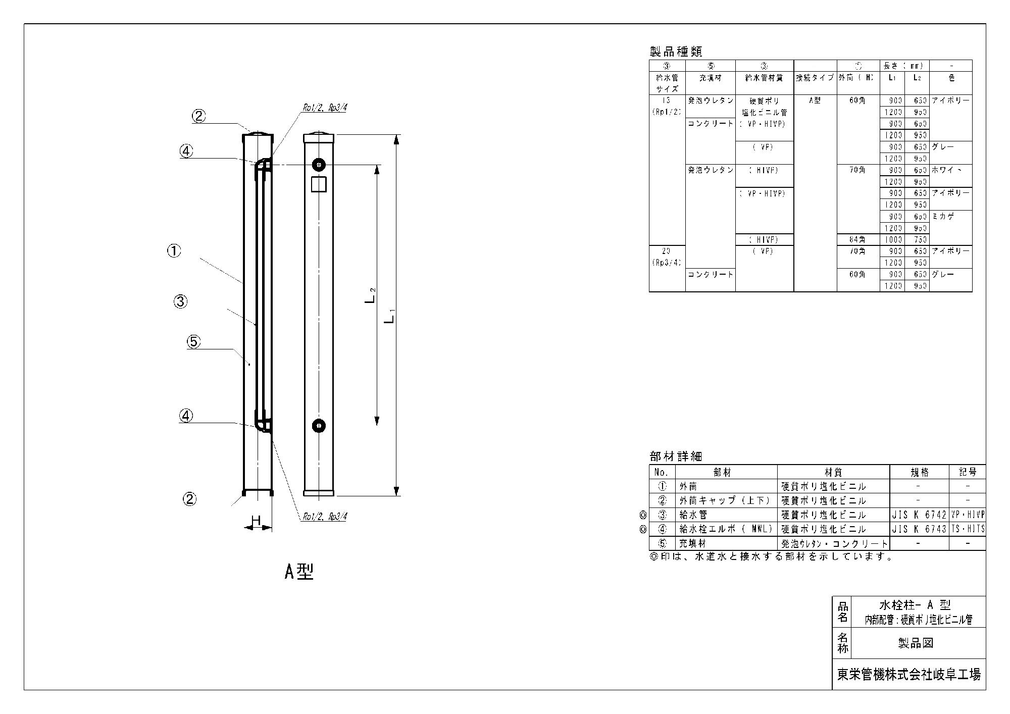 下記の画像(製品図)はA(内部配管硬質ポリ塩化ビニル管)タイプですが、