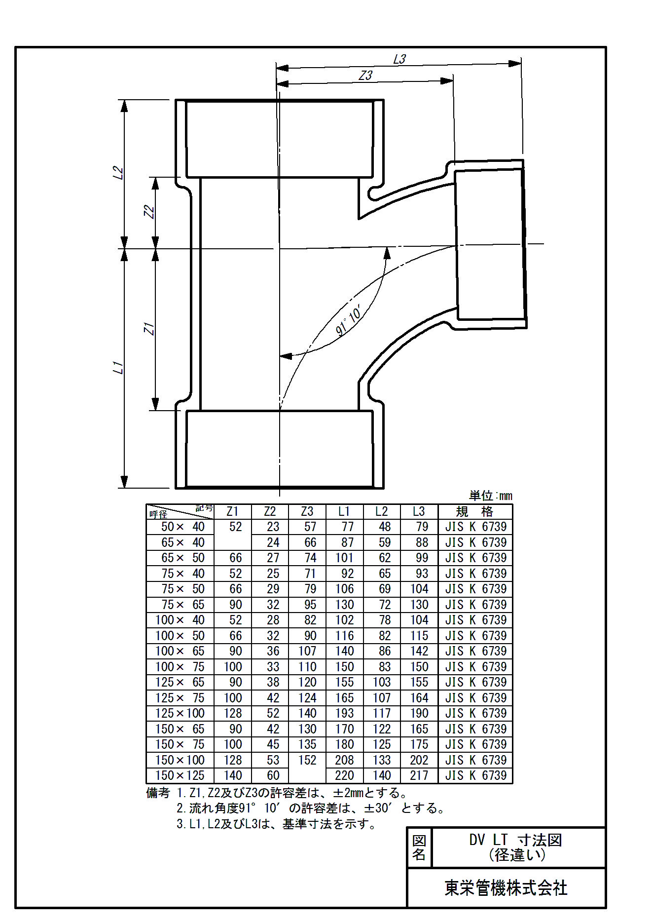 DV継手 径違い90°大曲りY