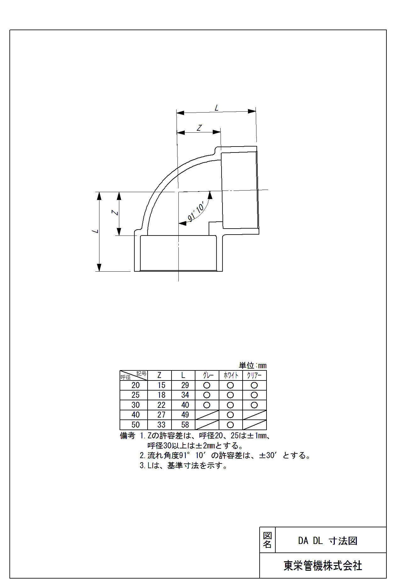 空調用ドレン継手 DA(白) 90°エルボ
