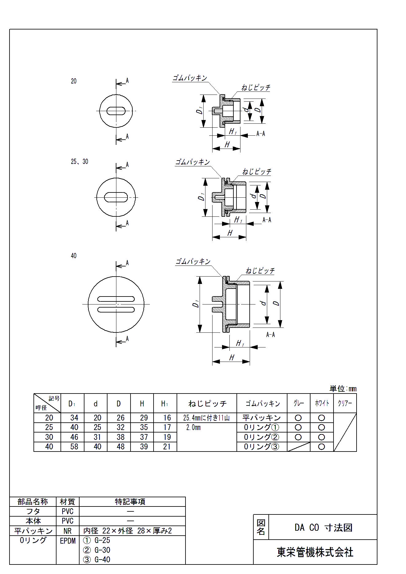 空調用ドレン継手 DA(白) 掃除口(ツマミ式)