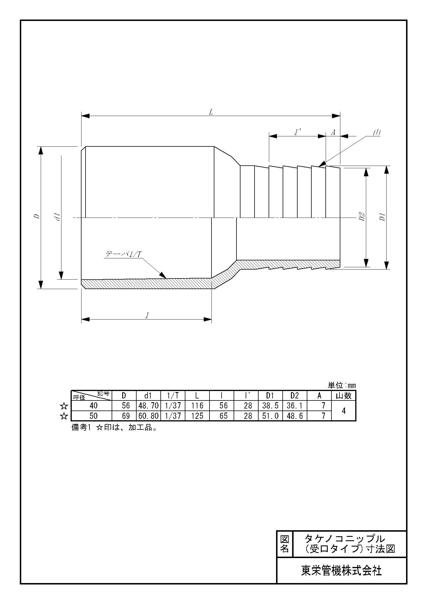 塩ビ製タケノコニップル タケノコニップル 受口タイプ