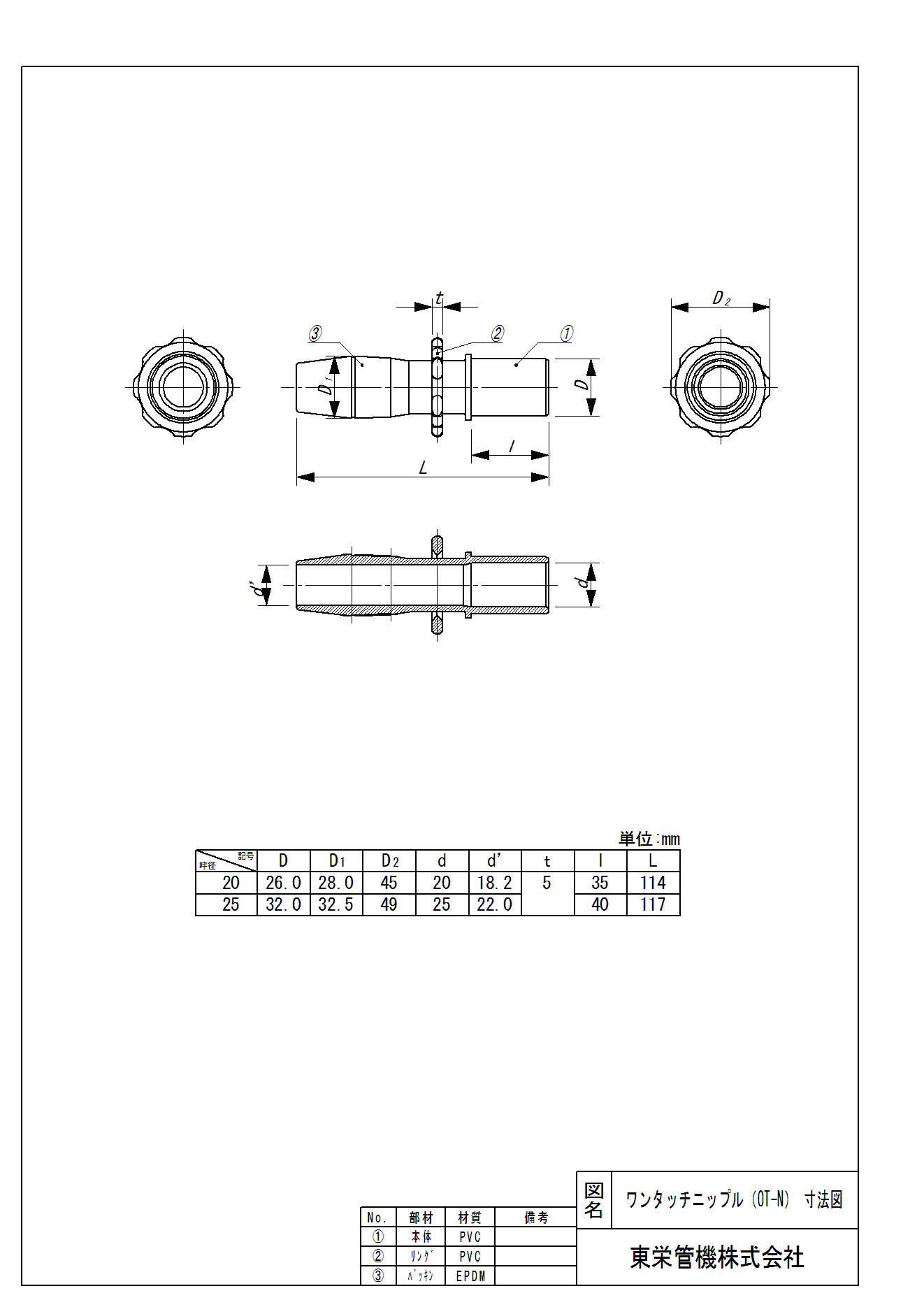 ※塩ビ管側はパイプ径のためソケットが必要です。