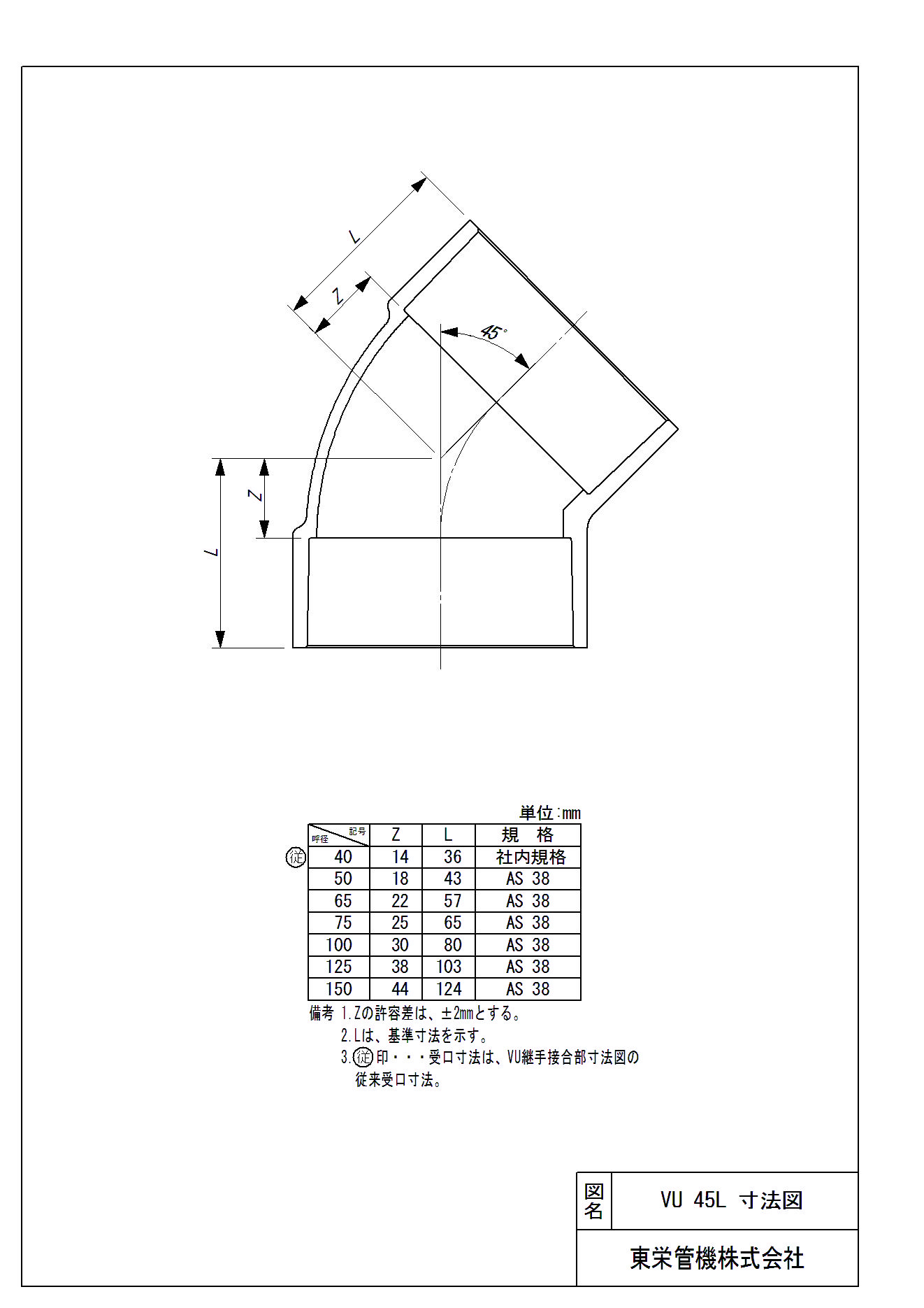 VU継手 45°エルボ