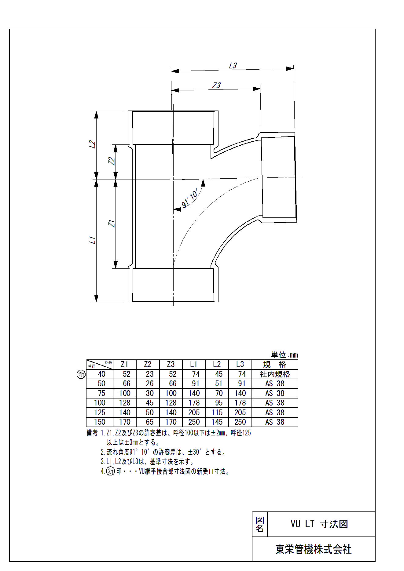※屋外排水設備用硬質塩化ビニル管継手(AS38)