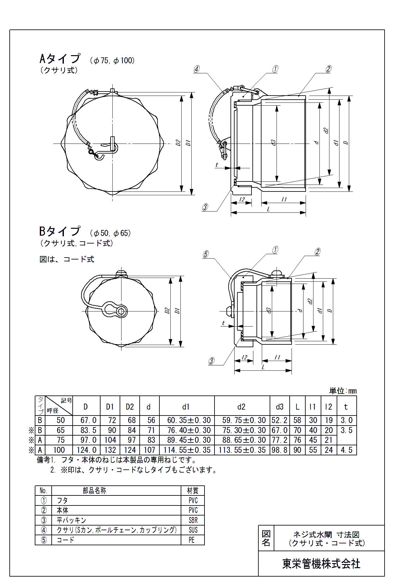 ネジ式水閘(クサリ・コード式) ネジ式水閘